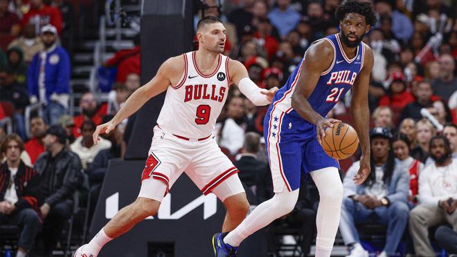 喬爾·恩比德僅出戰(zhàn)26分鐘便拿下20分,看起來(lái)又將迎來(lái)一個(gè)高效的夜晚。然而,他的光芒迅速消退。下半場(chǎng),恩比德10投僅1中,隨著芝加哥調(diào)整防守策略、收縮防線并放手一搏,他顯得舉步維艱。