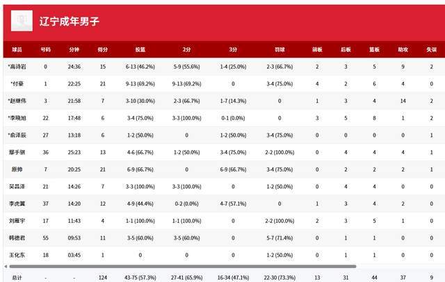 不得不說,遼寧隊(duì)的強(qiáng)大真是有目共睹的,連上一場6投0中的王化東,此役都靠罰球拿到1分,全隊(duì)6人得分上雙,付豪21分6籃板4助攻,原帥21分2籃板2助攻,高詩巖15分5籃板9助攻,鄢手騏13分4籃板4助攻,李虎翼12分4籃板,韓德君11分,趙繼偉7分14助攻。