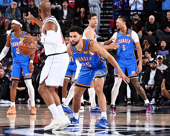 本場比賽中,雷霆的替補后場新星阿杰-米切爾(Ajay Mitchell)的表現(xiàn)又一次令人眼前一亮。米切爾全場出場19分38秒,投籃10中4,三分線外1中0,得到了8分4籃板3助攻4搶斷的數(shù)據(jù),還有2次失誤和2次犯規(guī),正負(fù)值更是達(dá)到了全場最高的+31。米切爾在進(jìn)攻端的手感還是比較一般的,他并沒有得到太多的分?jǐn)?shù),他的進(jìn)攻效率也不是特別理想。不過米切爾也是展現(xiàn)出了一定的傳球能力和組織能力,他在支配球和傳導(dǎo)球方面還是做得相當(dāng)不錯的。最關(guān)鍵的是,米切爾在防守端的表現(xiàn)令人刮目相看,他直接變身防守大閘并且在防守端起到了決定性的作用。米切爾幫助雷霆第二陣容建立起了巨大的領(lǐng)先優(yōu)勢,這也是雷霆最終能夠比較順利地拿下本場比賽勝利的重要因素。