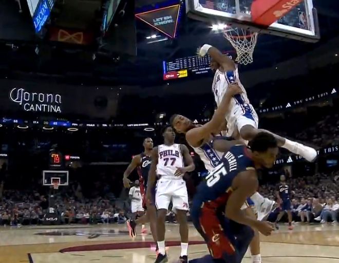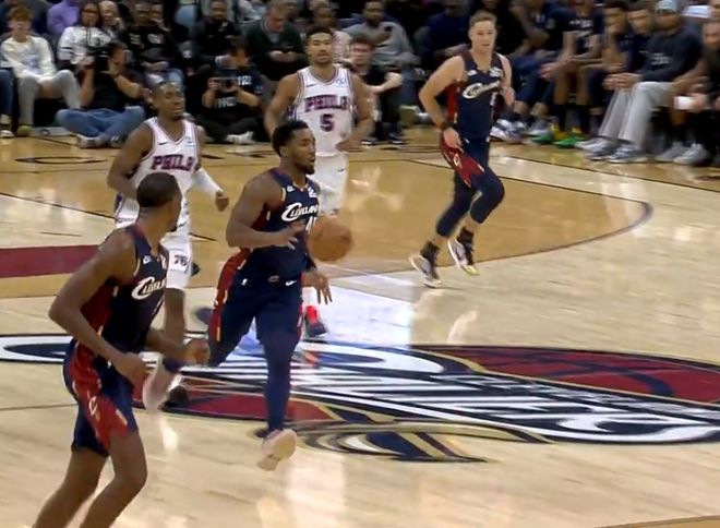 首節(jié)開打,米切爾突破吸引包夾,助攻加蘭命中大空位三分,投進(jìn)本賽季個(gè)人首球。馬克西連續(xù)失誤,米切爾連續(xù)強(qiáng)投三分命中,騎士開局打出17-4,直接打停76人。烏布雷強(qiáng)打籃下造犯規(guī),及時(shí)止血,隨后接球再中空位三分,一人連拿6分將分差縮小至9分。騎士連續(xù)送出擊地妙傳,莫布利籃下接球雙手暴扣終結(jié),隨后小南斯跳投三分不中,阿倫二次進(jìn)攻想要扣籃,德拉蒙德跟防送上個(gè)人本節(jié)第三次封蓋,首節(jié)打完, 騎士41-27領(lǐng)先76人14分。