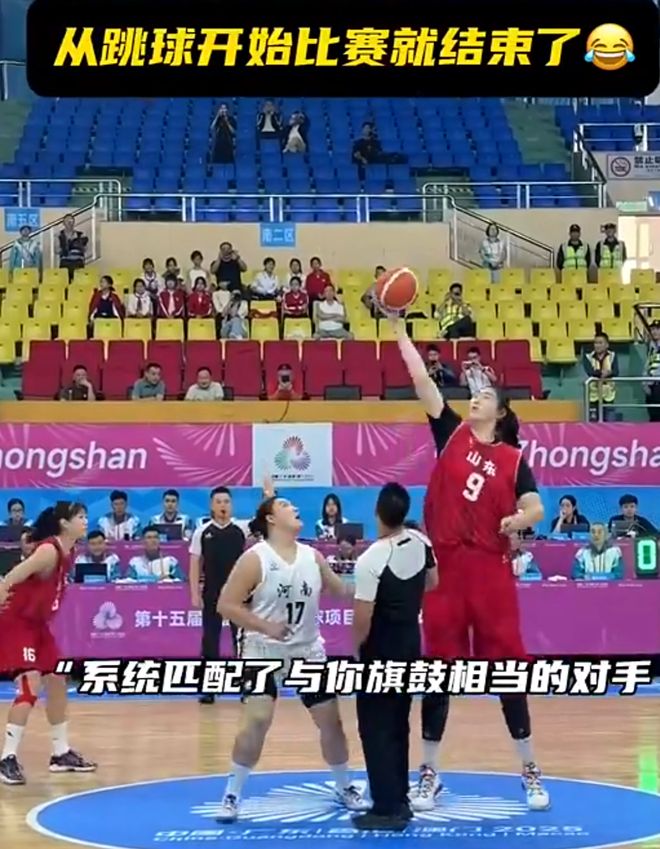 而且更夸張更離譜的是,河南隊不是沒有防守,是實打?qū)嵉囊恢庇蟹朗?,但是防不住,各種圍著她的腰跳來跳去的,像個小矮人,場面真的是太絕望了。這個場面就讓人不得不感慨一句,你說這些人費了半天勁進入到了全運會正賽,然后發(fā)現(xiàn)從跳球剛開始比賽就已經(jīng)結(jié)束了是什么感覺?