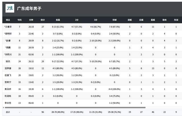 從數(shù)據(jù)來看,廣東隊3人得分上雙,徐杰爆發(fā),獨砍29分5助攻,王睿澤27分11籃板,趙睿12投2中,只拿到8分4助攻2搶斷,沈梓捷12分13籃板。胡明軒7投0中,靠4罰2中拿到2分1籃板4助攻。