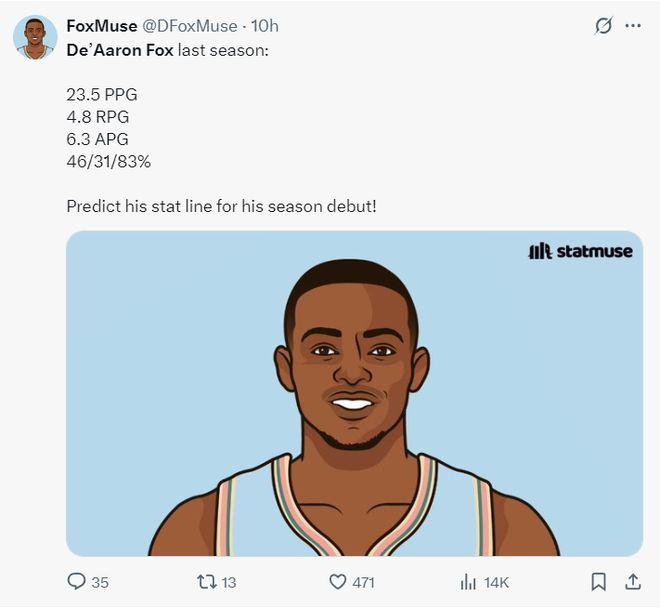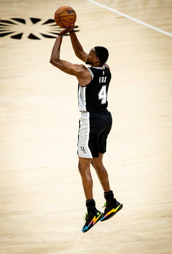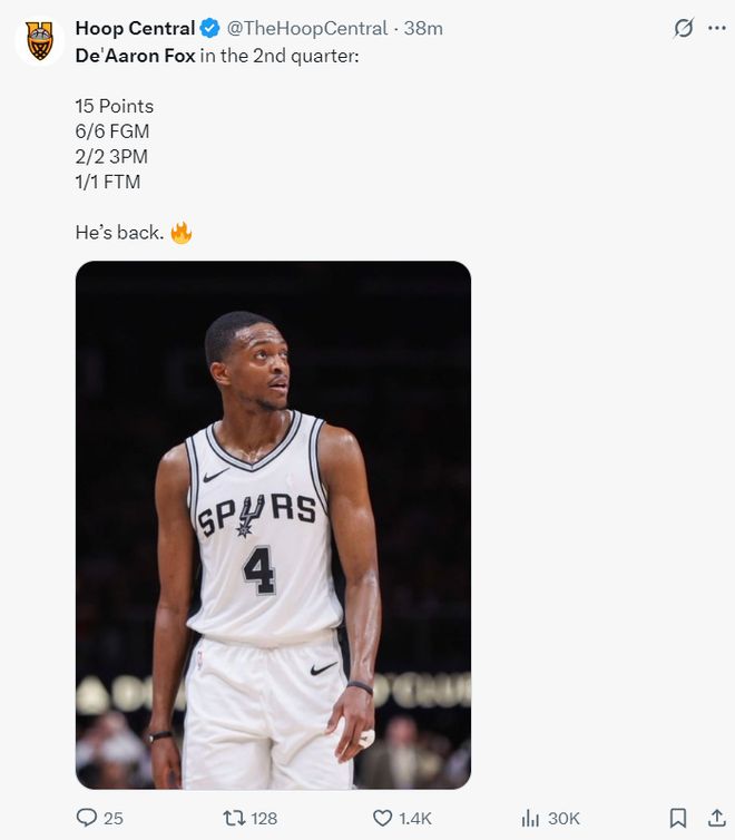 第二節(jié)??怂?分里,6中6,三分2中2,罰球1中1,拿到15分1籃板,他還是那輛聯(lián)盟最快跑車,福克斯這一節(jié)的表現(xiàn)就征服了主場球迷。