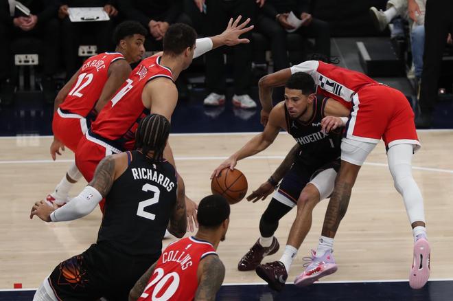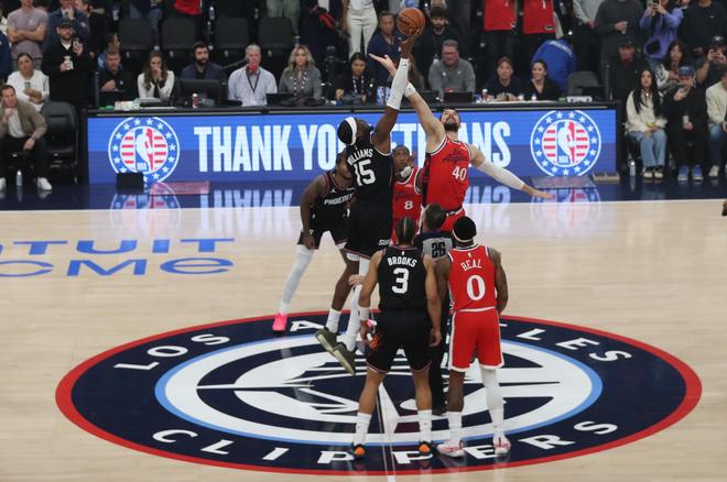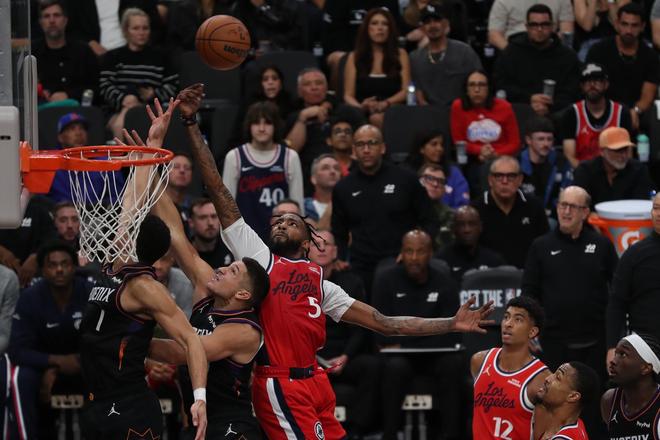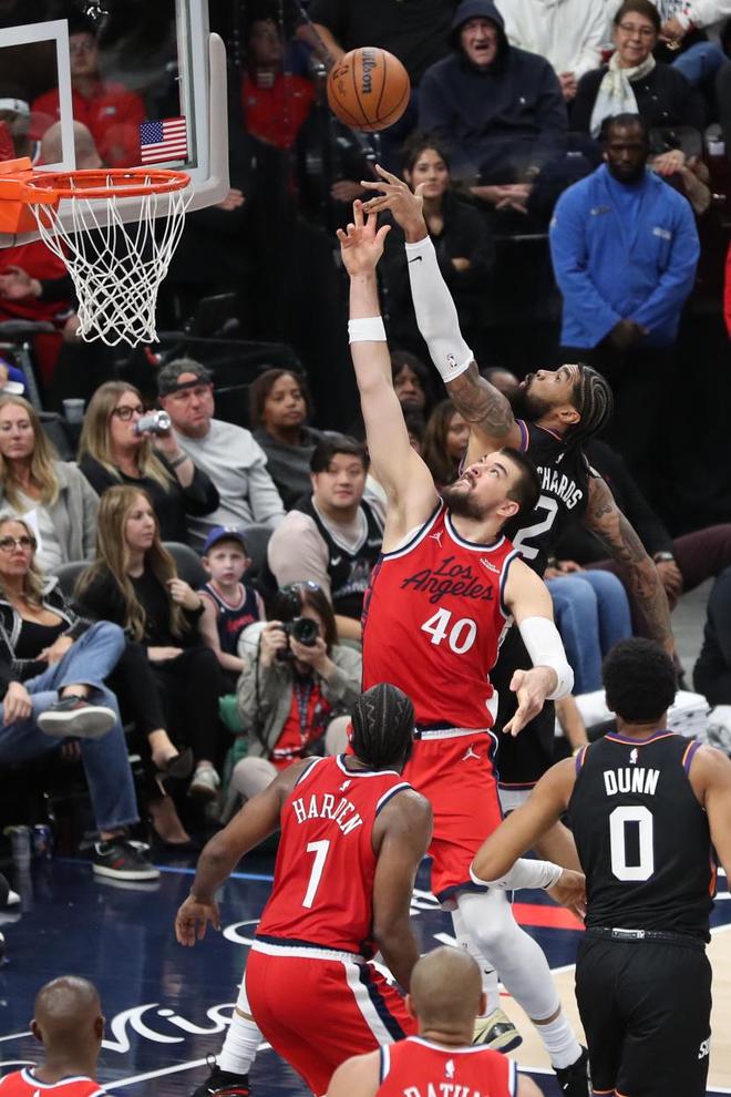 太陽隊(duì)的布克上半場得到13分和7次助攻,吉萊斯皮得到12分;快船隊(duì)的祖巴茨和科林斯各得到9分。