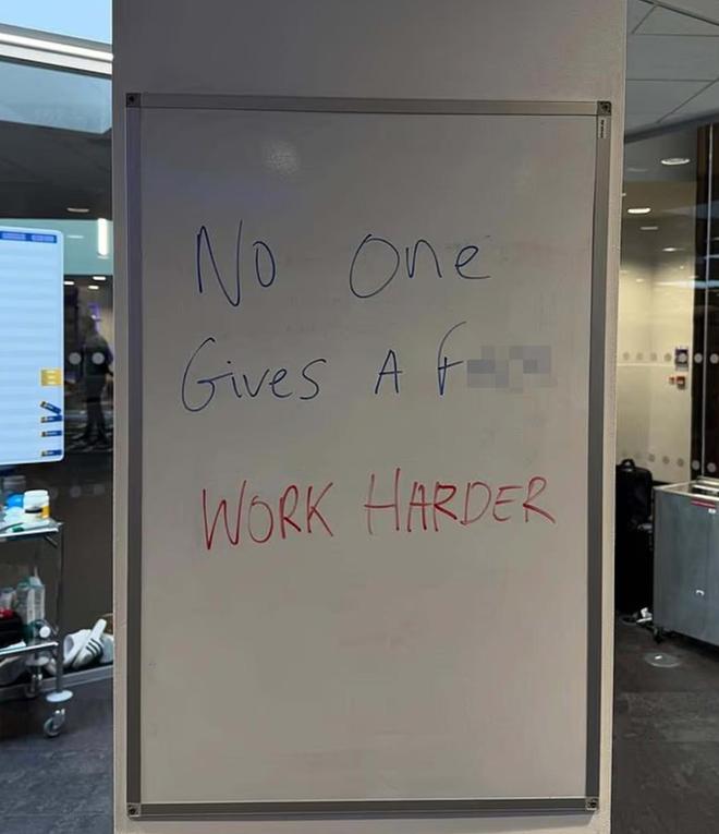帕爾默表示:“也不管第五張照片上說什么了”,照片中展示了切爾西基地的一塊白板,上面寫著“沒人在乎,再加把勁”。