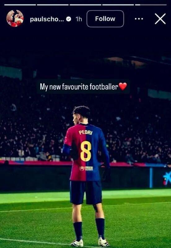 斯科爾斯Instagram:我最新鐘愛的球員[心]